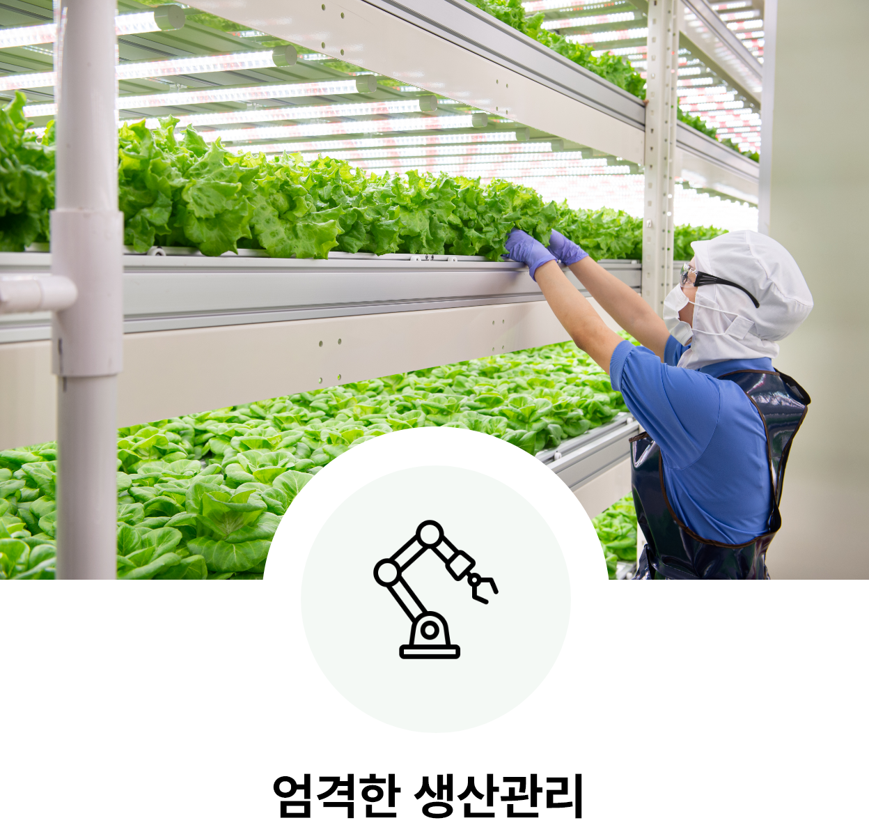 조건을 찾아 1년 365일 내내 안정적이고 품질 좋은 식물을 재배하는 최첨단 농업 시스템을 갖추었습니다.